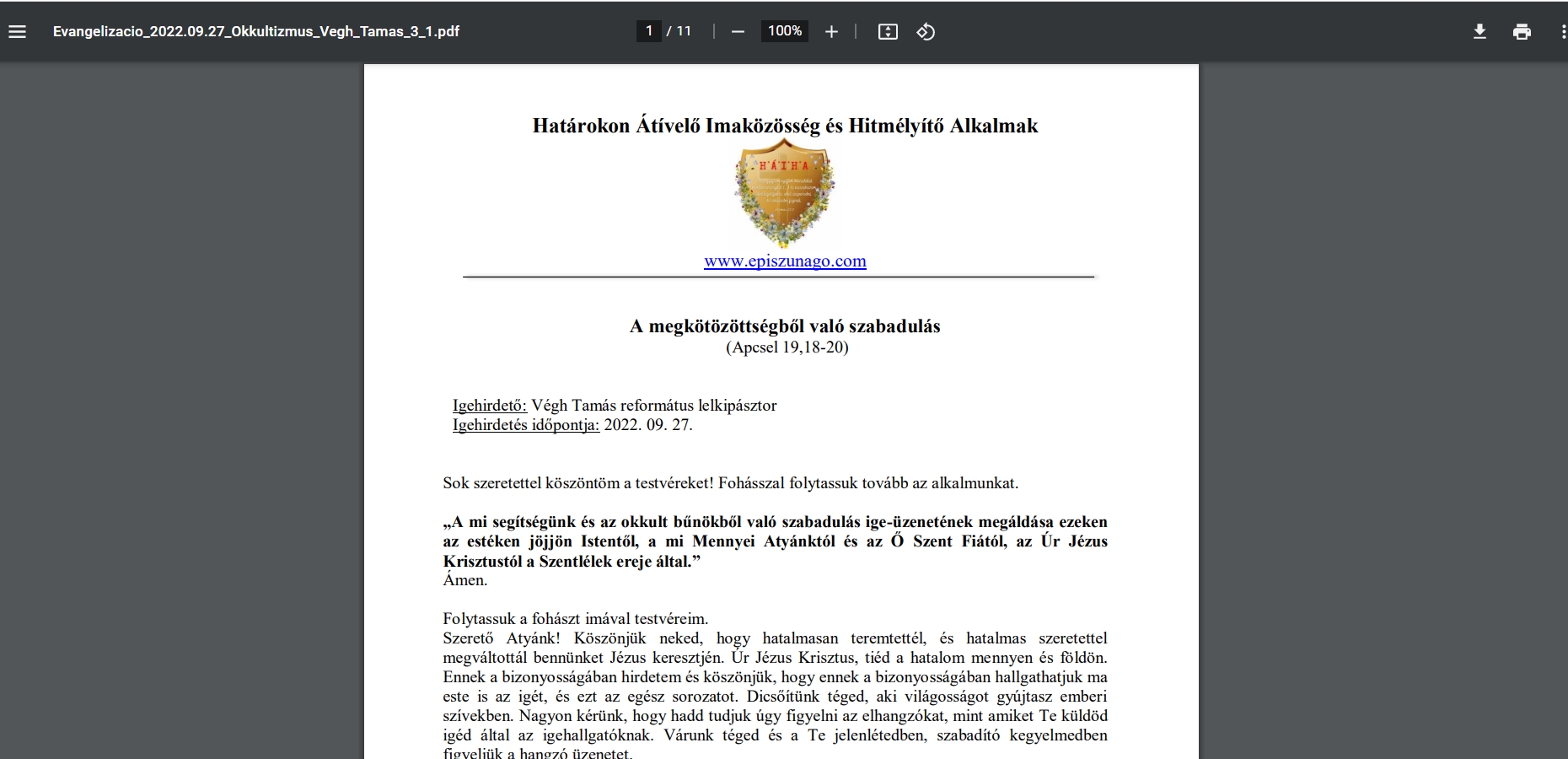 És ha a PDF letöltés-re kattintanak, akkor már láthatóvá is válik az írott igehirdetés.
