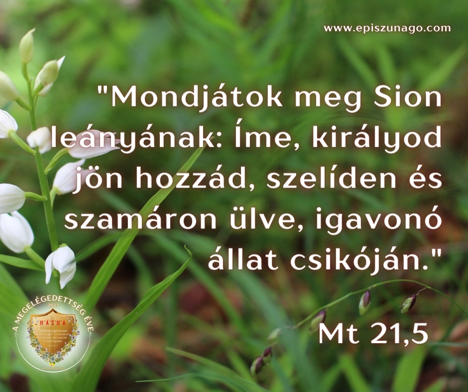 „Mondjátok meg Sion leányának: Íme, királyod jön hozzád, aki alázatos, és szamárháton ül, igavonó állat csikóján.”