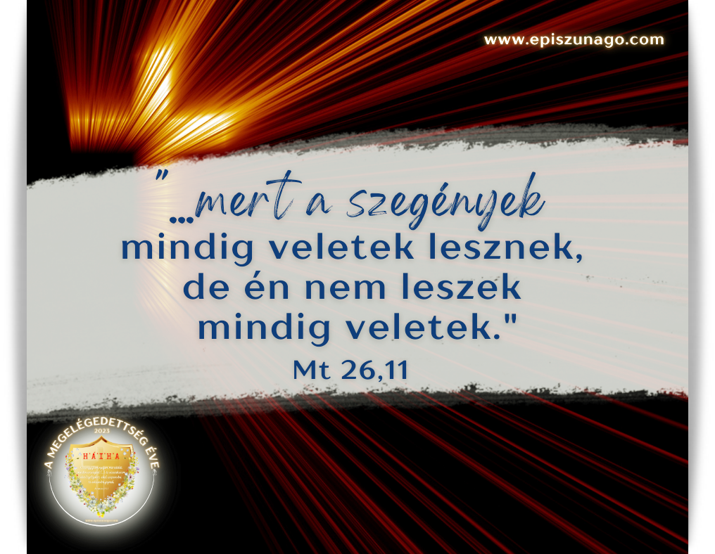 Amikor pedig Jézus Betániában, a leprás Simon házában volt, odament hozzá egy asszony, akinél egy alabástromtartóban drága olaj volt, és ráöntötte az asztalnál ülő Jézus fejére. Amikor látták ezt a tanítványai, bosszankodtak, és ezt mondták: Mire való ez a pazarlás? Hiszen el lehetett volna ezt adni sok pénzért, és odaadni a szegényeknek. Amikor ezt Jézus észrevette, megkérdezte tőlük: Miért bántjátok ezt az asszonyt? Hiszen jót tett velem, mert a szegények mindig veletek lesznek, de én nem leszek mindig veletek. Mert amikor ezt az olajat a testemre öntötte, a temetésemre készített elő. Bizony mondom nektek, hogy bárhol hirdetik majd az evangéliumot az egész világon, amit ez az asszony tett, azt is elmondják majd az ő emlékezetére. Mt 26,6-13